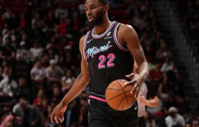 1月12日讯 NBA常规赛,热火半场59-54领先雷霆。在上半场的比赛中,热火球员维金斯外线手感不错...