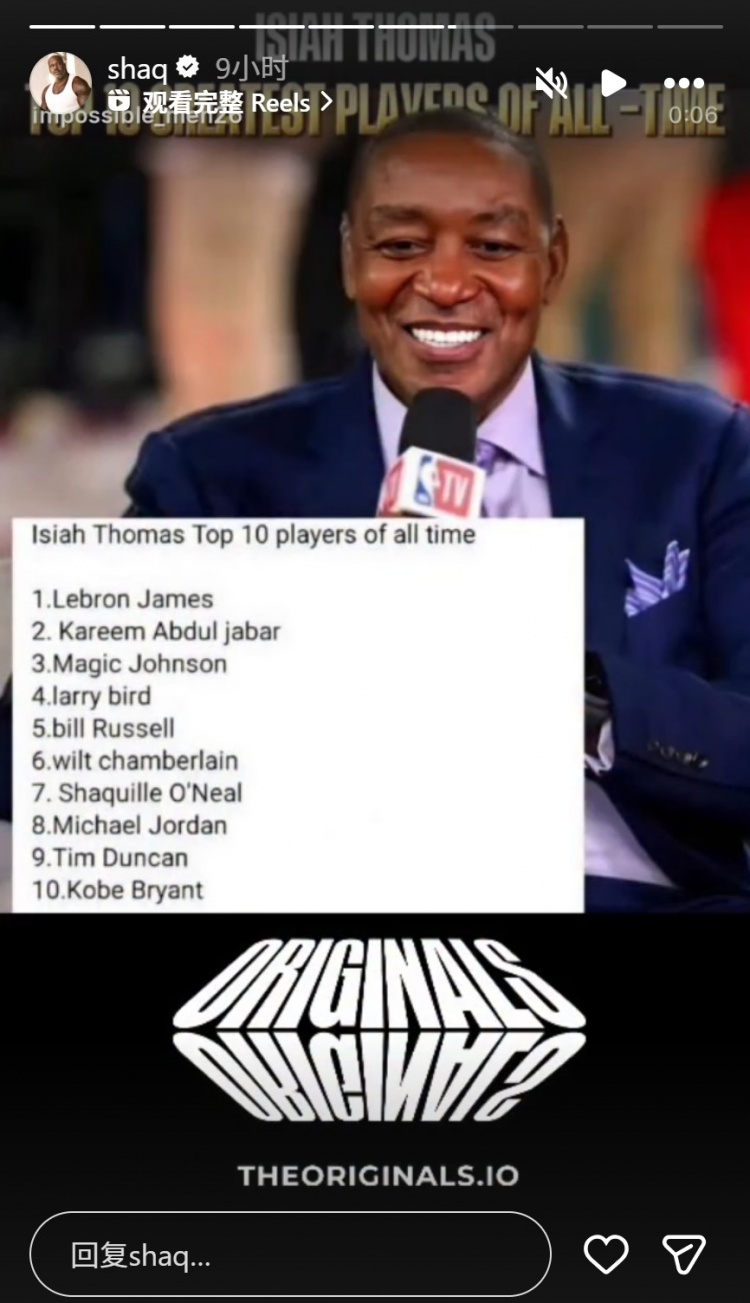 v体育-奥尼尔再次转发!微笑刺客历史前10:詹姆斯第1 奥胖第7 乔丹第8